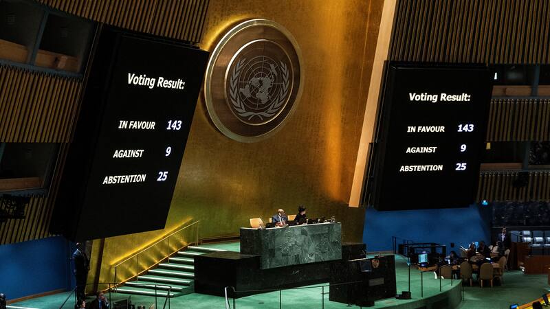 La resolución fue adoptada con el abrumador apoyo de 143 votos a favor, 25 abstenciones y nueve votos en contra, entre ellos los de Estados Unidos, Israel y Argentina.