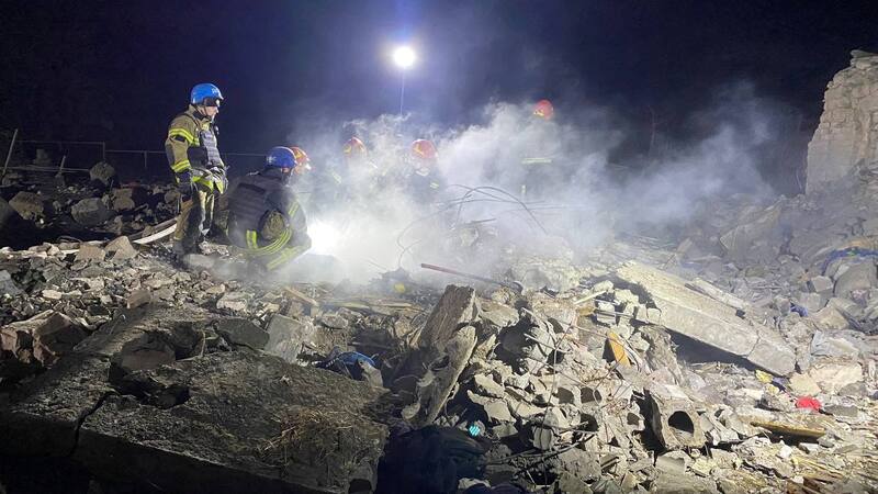 Las labores de rescate se prolongaron durante la noche, buscando entre montones de escombros humeantes en la oscuridad, así como en un vehículo calcinado. Las imágenes fueron difundidas en Internet por el gobernador regional, Vadym Filashkin.