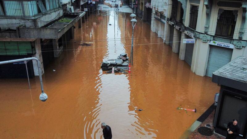 En Porto Alegre, capital de Rio Grande do Sul, el río Guaiba se desbordó e inundó las calles. El aeropuerto internacional de la ciudad suspendió todos los vuelos por tiempo indefinido.