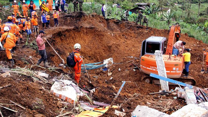 Brigadas de rescate con apoyo de excavadoras están desde temprano removiendo tierra en busca de más víctimas, mientras intentan habilitar el tráfico por una vía nacional afectada por la emergencia.