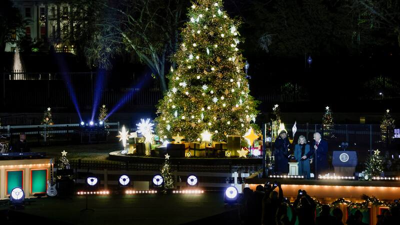 Biden celebra tradición de un siglo y enciende inmenso árbol de Navidad de la Casa Blanca