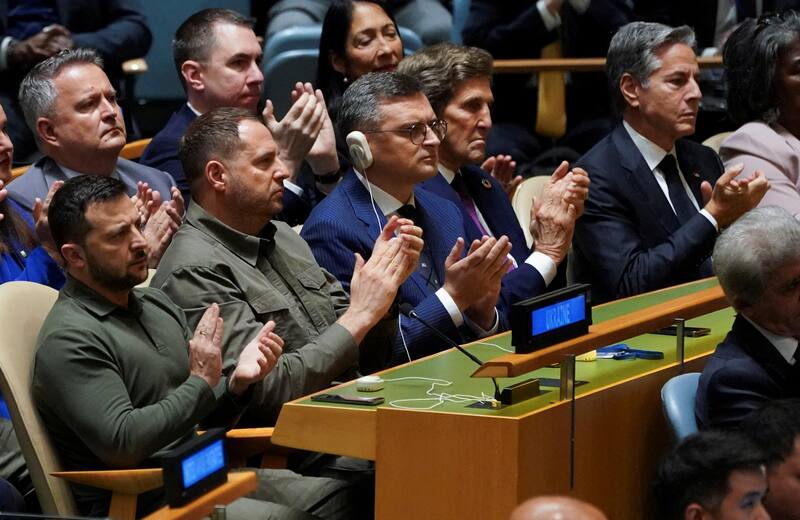 “Debemos oponernos a esta agresión descarada hoy y disuadir a quienes pretendan ser agresores mañana”, dijo el Presidente estadounidense Joe Biden en su discurso a la Asamblea General. Su promesa de apoyo a Ucrania provocó aplausos, y las cámaras de la ONU enfocaron a Zelensky, ocupando la banca de Ucrania en la Asamblea General y aplaudiendo.