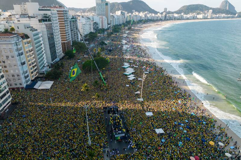 Posteriormente, el presidente asistió a otro desfile militar a lo largo de la playa de Copacabana, en Río de Janeiro, donde sus seguidores suelen manifestarse. El desfile incluyó saludos con fusiles, fuego de cañones, exhibición aérea, paracaidistas y buques de guerra fondeados en el mar.