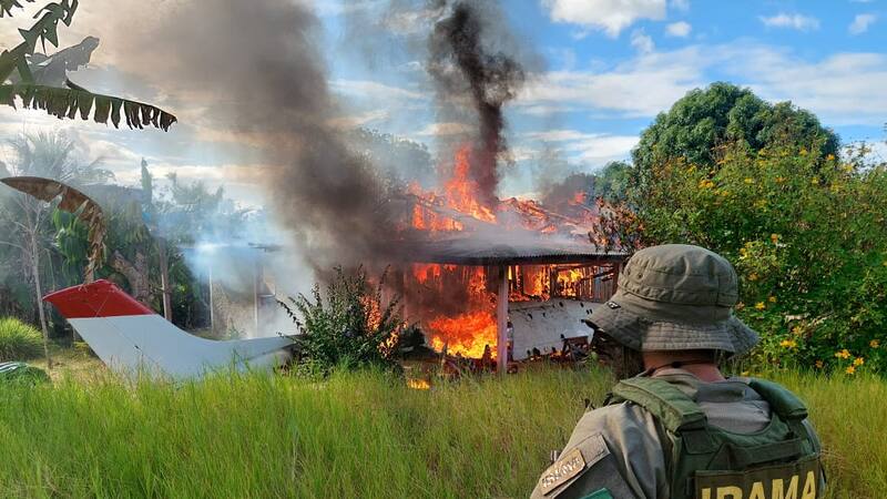 El Instituto Brasileño del Medio Ambiente y de los Recursos Naturales Renovables (Ibama), con apoyo de la Fundación Nacional del Indio y la Fuerza Nacional de Seguridad Pública, hallaron un helicóptero, un avión, una bulldozer, así como viviendas y hangares improvisados, y los destruyeron, tal como permite la ley. También incautaron dos armas de fuego y 5.000 litros (1.320 galones) de combustible. Además descubrieron un helicóptero oculto en el bosque y le prendieron fuego.