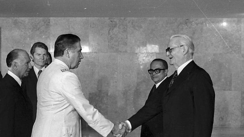 Sin embargo, para marzo de 1974, cuando Geisel reemplaza en el poder a Médici, el nuevo gobernante decide reducir la excesiva proximidad de Brasil con Chile de modo general, y con la figura de Pinochet en particular. “Geisel inició ese movimiento antes incluso de asumir el poder, cuando sus asesores pidieron al embajador chileno en Brasilia, el almirante Hernán Cubillos Leiva, que Pinochet no fuera a Brasil para la asunción de Geisel. Cubillos incluso envió un comunicado secreto a Santiago con la recomendación a Pinochet de no viajar a Brasil. Geisel llegaba al poder con la promesa de ‘apertura lenta, gradual y segura’ del régimen brasileño y no quería la presencia de Pinochet, que en aquel momento era la encarnación del problema de las violaciones de los derechos humanos en el Cono Sur”, explica Roberto Simon.