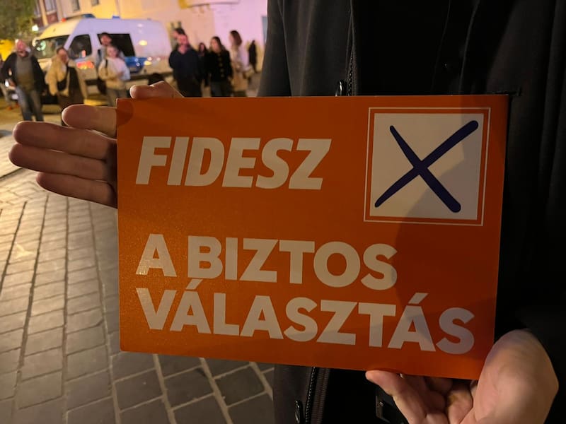A los pies de la Iglesia de San Matías, en la colina de Buda, el cierre de campaña de Orbán tuvo lugar este sábado por la noche, con cerca de mil personas como asistentes. En una plaza no más grande que una cuadra, las banderas grandes de Hungría, antorchas y carteles pro-Fidesz eran acompañadas por música fuerte, parecida al eurobeat, y de vez en cuando, gritos de “Viktor, Viktor, Viktor”.