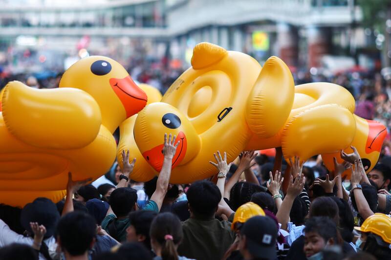 Según la BBC, los tailandeses encontraron métodos creativos para protestas como el uso de patos de goma o el saludo de los tres dedos, un gesto de desafío contra el gobierno inspirado en la película Los Juegos del Hambre.