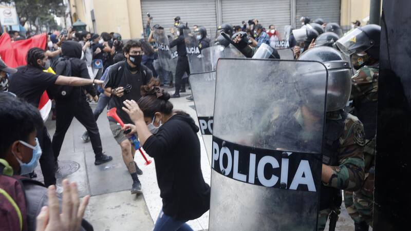 A raíz de la moción de vacancia aprobada por el Congreso de Perú y la designación de Manuel Merino como jefe de Estado, se generaron multitudinarias movilizaciones que se extendieron hasta que el nuevo Mandatario debió dimitir. Durante las protestas sociales se registraron una decena de heridos y al menos dos fallecidos.