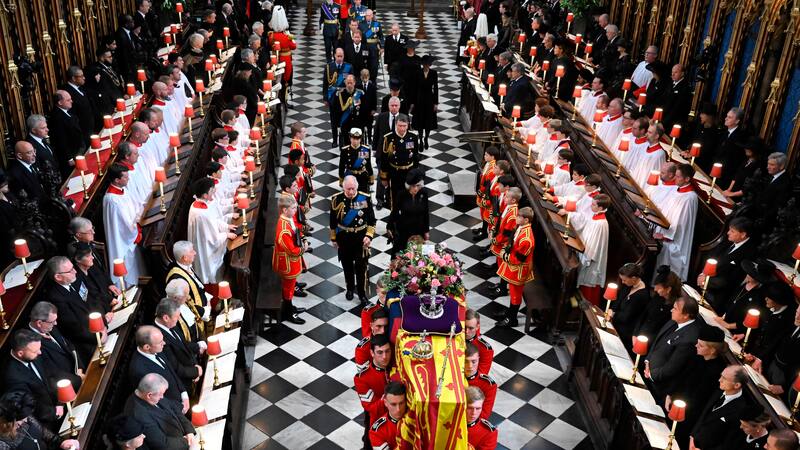 El primer funeral de Estado desde el realizado a Winston Churchill en 1965, tuvo un gran despliegue y fue la culminación de un período de luto tras el fallecimiento de la monarca el 8 de septiembre pasado. Previo al servicio, una campana tocó 96 veces, una por minuto, por cada año de vida de Isabel. Después, 142 marineros de la Armada tiraron del carro de armas con el ataúd de Isabel hasta la Abadía de Westminster, donde los portadores del féretro lo llevaron al interior de la iglesia, donde unas 2.000 personas se reunieron para recordarla.