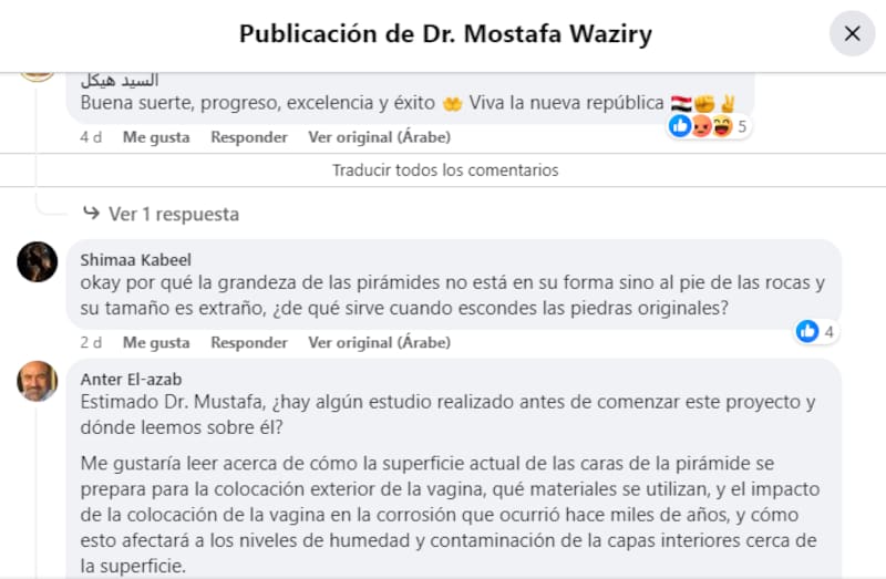 Según el arqueólogo, la iniciativa “permitirá ver, por primera vez, la pirámide de Menkaure tal y como fue construida por los antiguos egipcios”. Así, lo llamó “el proyecto del siglo”, pero inmediatamente fue cuestionado en los comentarios por decenas de personas molestas.