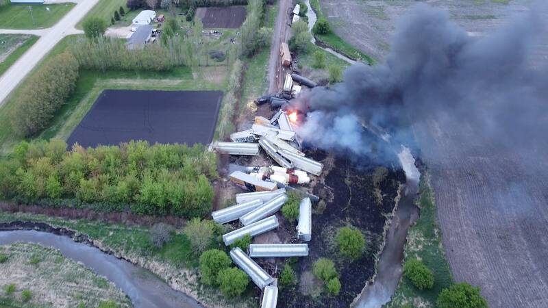 En total 47 vagones se salieron de las vías del tren y comenzaron a incendiarse en el camino. Debido a su carga, nitrato de amonio, y su toxicidad las autoridades decidieron que cerca de 80 personas dejaran sus hogares y se movieran a un lugar seguro.