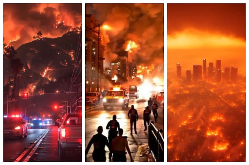 Varios videos han comenzadp a circular en redes sociales en donde sepueden ver a los edificios y calles de Los Ángeles entre llamas y humo, con Bomberos en el lugar. Estos videos han sido generados con inteligencia artificial y han sido por lo general rápidamente desmentido.