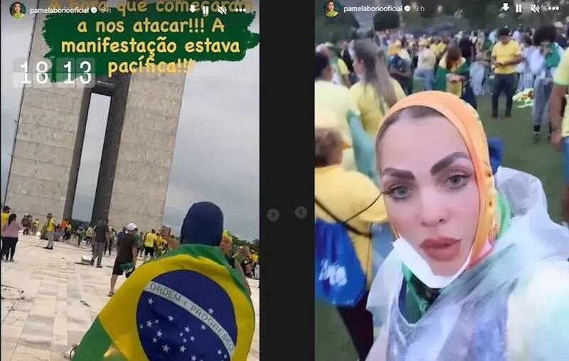 Bório subió historias en Instagram acompañada de bolsonaristas, junto a fotos posteriores en las que se encontraba en el techo del Congreso. En ellas denuncia la violencia por parte de la policía y alega el contexto pacífico de la manifestación. En los registros apare acompañada de su hijo de 12 años y con una tela amarilla enrollada en el cabello.