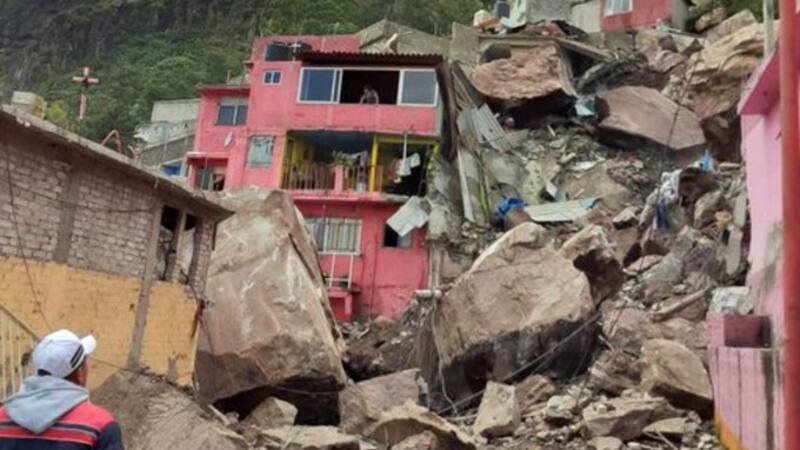 Imágenes televisivas mostraron que el deslizamiento de las rocas ocurrió en la falda del cerro, colmado de viviendas.