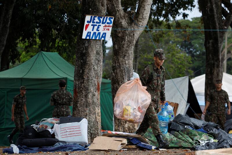 A lo largo de la mañana de este lunes, los agentes iniciaron el desmantelamiento de un campamento después de que en la noche del domingo el Ejército no permitiera la entrada de la Policía. Según fuentes del gobierno a las que tuvo acceso el diario O Globo la negativa podría estar motivada porque muchos de los acampados eran familiares y conocidos de los militares.