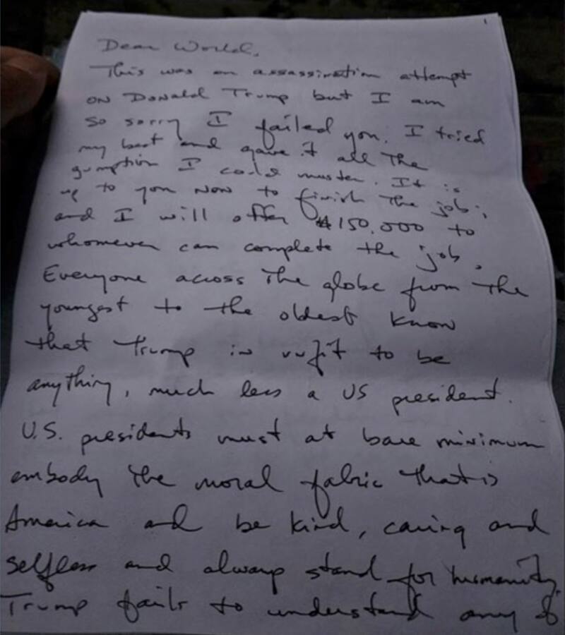 Detenido por el último ataque a Trump confesó en una carta que quería perpetrar un “intento de asesinato”