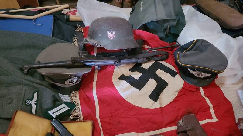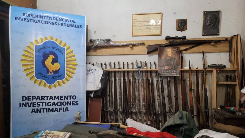 Cuando fue allanado su domicilio, fueron incautados 43 fusiles con símbolos nazis, pistolas, uniformes de la Segunda Guerra Mundial y bustos de líderes totalitarios como Hitler y Mussolini, entre otros objetos.