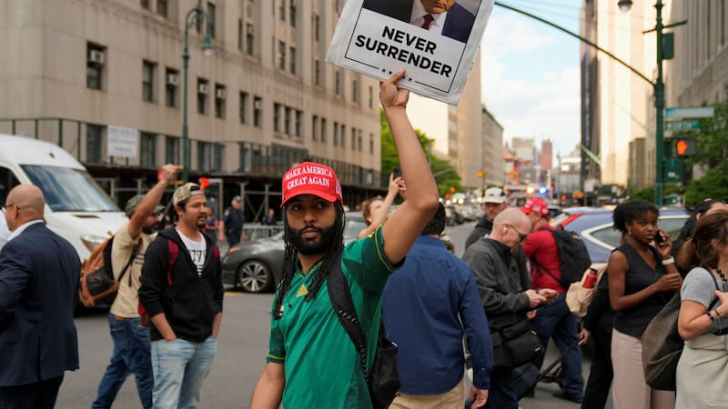 Un partidario de Trump con una gorra roja de Trump 2024 dijo: “Nueva York odia a Trump. No tuvo ninguna oportunidad. Es un desastre, no es justo”.