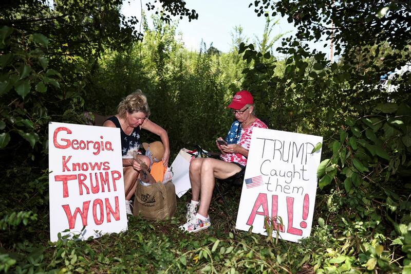 Beth Keeney, de 57 años, profesora jubilada, y Molly Sturgeon, de 55 años, jubilada de las ventas, acudieron al mitin desde el noroeste de Georgia. Keeney consideró la acusación “una abominación, completamente política”, dijo.