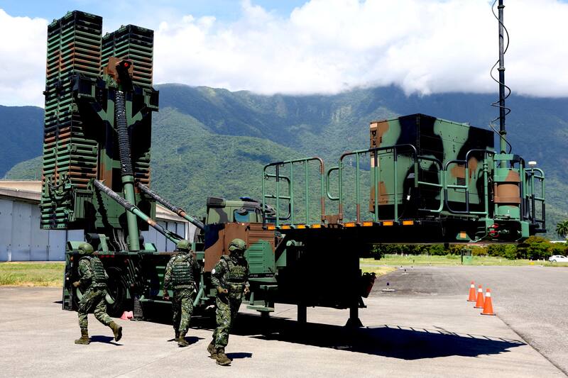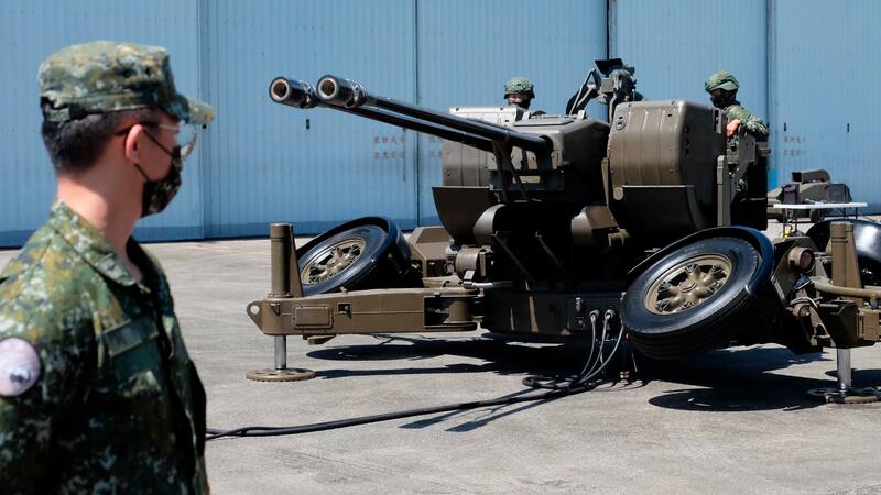 El jueves, los simulacros en la Base Aérea de Hualien, en la costa este, simularon una respuesta a un ataque con misiles chinos. El personal militar practicó con misiles antiaéreos Sky Bow 3 de fabricación taiwanesa y cañones antiaéreos de 35 mm, pero no los disparó.
