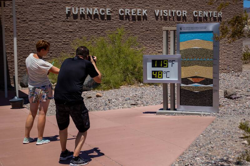 Este fin de semana, las temperaturas podrían superar los 54,4 °C, pero eso probablemente no disuadirá a algunos dispuestos a desafiar el calor. Los letreros en las rutas de senderismo desaconsejan aventurarse después de las 10 a.m., aunque todavía se espera que las temperaturas nocturnas superen los 32,2 °C. La temperatura más alta registrada en el Valle de la Muerte fue de 56,6 °C en julio de 1913, según el Servicio de Parques Nacionales.