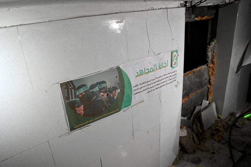 A los periodistas que acompañaron al Ejército israelí al barrio de al-Rimal, muy dañado en Ciudad de Gaza, en el norte de Gaza, se les mostró la red de túneles de Hamas, que serpenteaba aproximadamente media milla (805 metros) debajo de los edificios de la ONU y otros en el área.