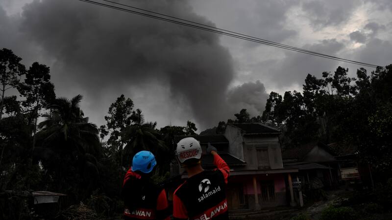El volcán Semeru, en el distrito de Lumajang, en la provincia de Java Oriental, arrojó espesas columnas de ceniza que alcanzaron más de 12.000 metros (40.000 pies) de altura, así como flujos de gases ardientes y lava que descendieron por las cuestas tras una súbita erupción desencadenada el sábado por las fuertes lluvias. Varias aldeas quedaron cubiertas por la ceniza caída desde las alturas.