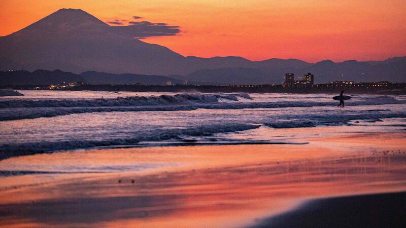 El Monte Fuji está cubierto de nieve la mayor parte del año, pero durante la temporada de senderismo de verano muchos caminan penosamente por sus empinadas y rocosas laderas durante la noche para ver el amanecer. La montaña simétrica ha sido inmortalizada en innumerables obras de arte, incluyendo la “Gran Ola” de Hokusai. Su última erupción fue hace unos 300 años.
