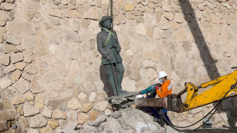 “Día para la Historia”, tuiteó el martes por la noche el gobierno de la ciudad autónoma de Melilla junto a una serie de fotografías de obreros retirando la estatua con la ayuda de una retroexcavadora.
