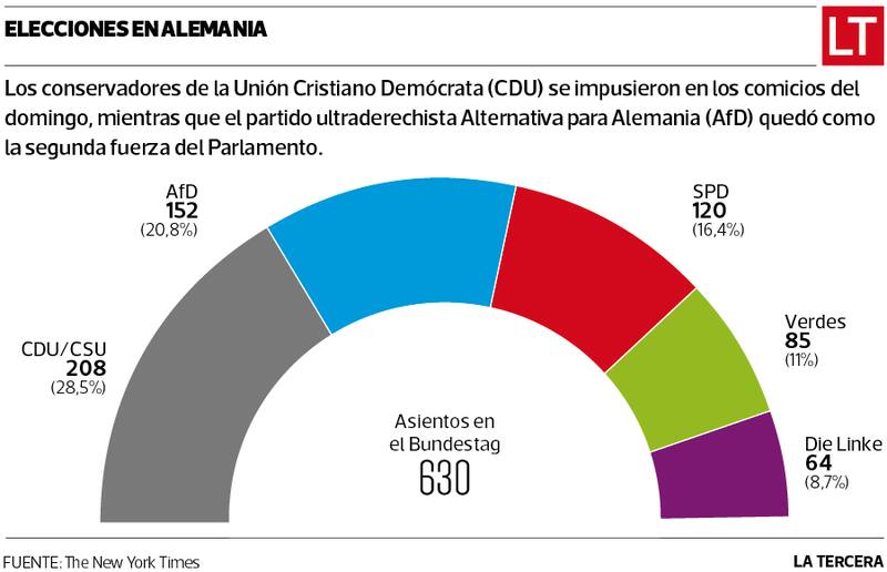 Si bien el partido conservador Unión Cristiano Demócrata (CDU), liderado por Friedrich Merz, obtuvo la mayoría en las elecciones del domingo en Alemania con el 28,5% de los votos y 208 asientos en el Congreso, los comicios significaron también un hito histórico para Alternativa para Alemania (AfD). Esto, porque la ultraderecha alemana dobló su votación en menos de cuatro años.