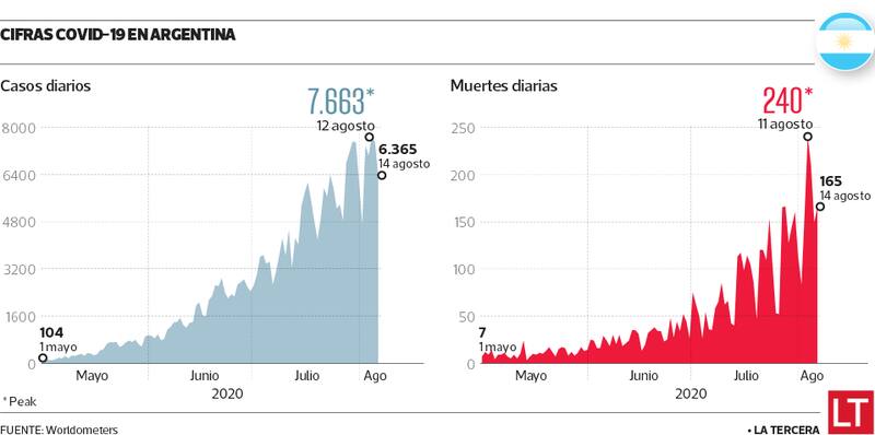 Argentina ya suma 276.072 contagiados y 5.428 fallecidos. El miércoles se registró el récord de casos diarios, con 7.663 infectados, mientras que el martes fue el peak en la cifra de fallecidos, con 240. Eso sí, se ha confirmado que existe un retraso en el reporte de las cifras, y muchos de los casos diarios en realidad corresponden a semanas, incluso meses anteriores.