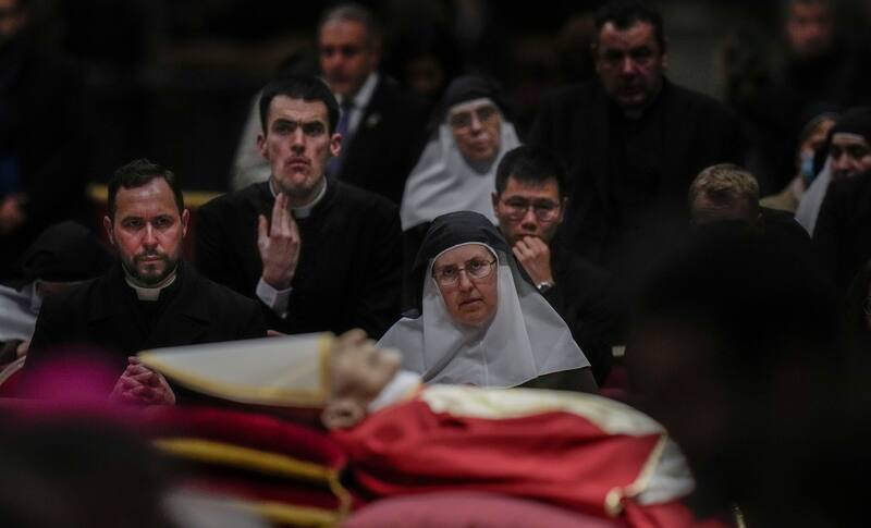 Más tarde, este miércoles, los funcionarios vaticanos colocarían el cuerpo de Benedicto en tres féretros -uno de madera ciprés, otro de zinc y otro más también de madera- junto al relato de su papado, las monedas acuñadas durante su pontificado y sus estolas de palio.