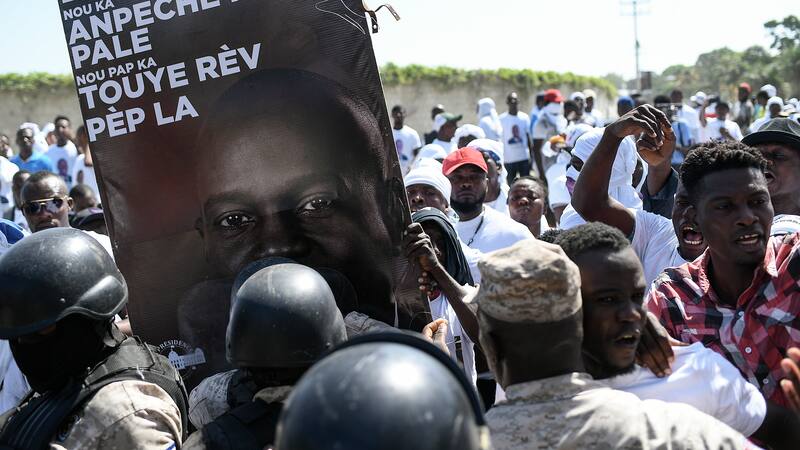 Una vez que el funeral concluyó, los manifestantes apedrearon a una caravana de autoridades haitianas y periodistas que se retiraban.