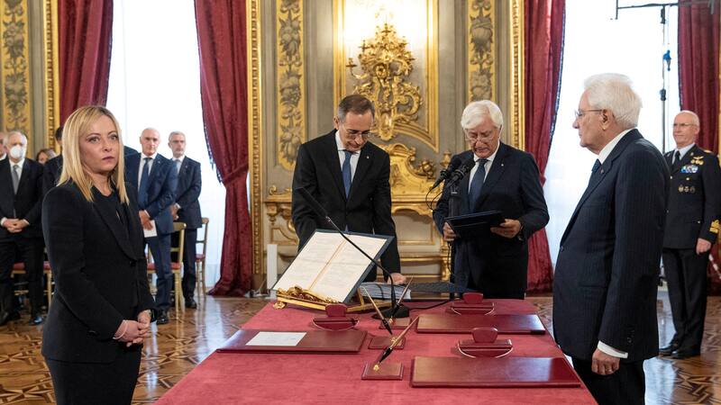 Meloni recitó un juramento tradicional por el que se comprometió a ser fiel a la república instaurada en la posguerra y a actuar “en interés exclusivo de la nación”. Después firmó la promesa, refrendada por Mattarella, quien, en su papel de jefe de Estado, actúa como garante de la Constitución redactada en los años posteriores a la guerra que acabó con el régimen del dictador fascista Benito Mussolini.