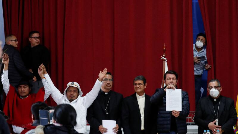 En el día 18 de las movilizaciones convocadas por la Confederación de Nacionalidades Indígenas del Ecuador, el movimiento liderado por Leonidas Iza y el gobierno del Presidente Guillermo Lasso llegaron este jueves a un acuerdo que pone fin a las protestas y el paro nacional tras la mediación de la Iglesia Católica.