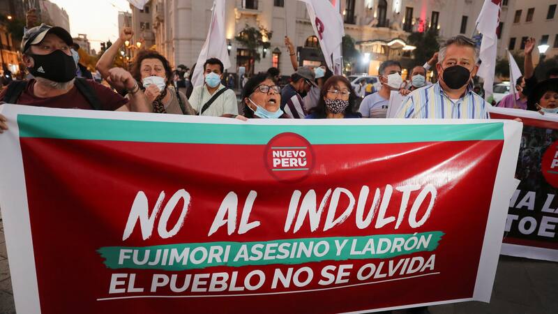 La orden para liberar a Fujimori provocó la noche del jueves protestas en las principales ciudades de Perú, además de una marcha de cientos por las calles de Lima. Los manifestantes llevaban carteles con frases como “Tribunal Constitucional corrupto” o “Fujimori asesino y ladrón”.