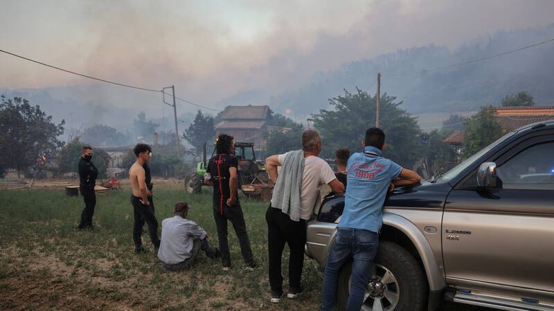 Más de 30 bomberos apoyados por dos aviones y cinco helicópteros luchaban contra las llamas en la isla de Andros, en el mar Egeo, lejos de los centros turísticos, donde cuatro comunidades fueron evacuadas por precaución.