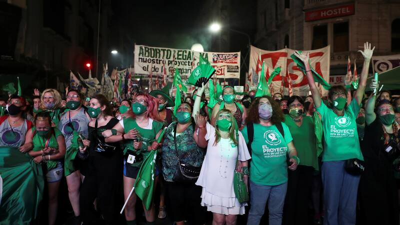 La aprobación de la ley luego de sucesivos intentos del movimiento feminista para que obtuviera luz verde en el Congreso fue festejada por una multitud de activistas pro aborto vestidas con prendas verdes, el color que las identifica.