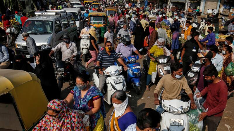 Los mercados siguen atestados en distintas partes del país, incluyendo Nueva Delhi, Mumbai, Ahmedabad, Lucknow y Patna, y el uso de la mascarilla y la distancia social quedaron de manifiesto en la temporada de festivales que va de octubre a noviembre.