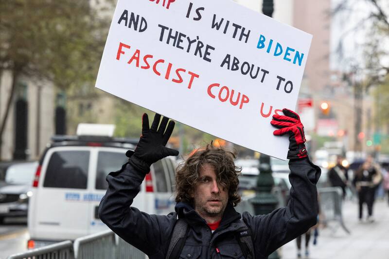 Se le vio lanzando panfletos al aire momentos antes de prenderse fuego. No está claro si la protesta fue a favor o en contra del expresidente, quien actualmente está siendo juzgado por pagos de dinero hechos a la estrella porno Stormy Daniels para mantener su silencio.