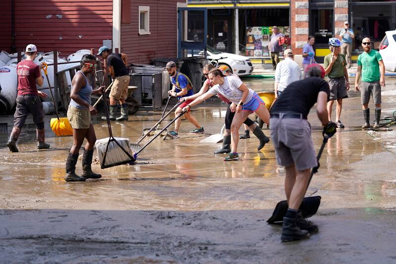 En Vermont, el retroceso de las inundaciones permitió a las autoridades concentrarse en recuperarse de un desastre que atrapó a los residentes en sus hogares, cerró carreteras y obstruyó calles y negocios con lodo y escombros. En la capital, Montpelier, donde las calles se inundaron el martes por la crecida del río Winooski, las autoridades dijeron que los niveles de agua en una represa río arriba parecían estables. “Parece que no se romperá. Está bien. Es un pendiente menos”, dijo el administrador de la ciudad, Bill Fraser.