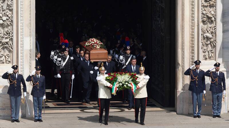 Miles de personas afuera y dentro del Duomo estallaron en aplausos como una señal de respeto mientras el ataúd del exprimer ministro, decorado con flores, era sacado del coche fúnebre y llevado al interior de la catedral de Milán.