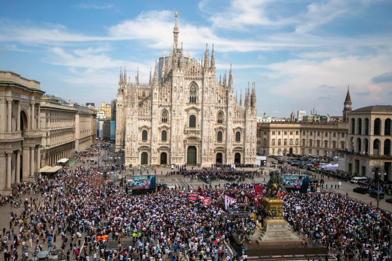 Más de dos mil personas repletaron la catedral Duomo para asistir a la ceremonia celebrada por el arzobispo de Milán, mientras que la multitud congregada en la plaza adyacente contemplaba dos grandes pantallas utilizadas normalmente para conciertos de música pop. Al interior de la catedral se encontraban la élite política y empresarial de Italia, incluyendo el presidente y tres ex primeros ministros de Italia. Los hijos de Berlusconi y sus acompañantes lloraban mientras el ataúd era acomodado en el altar.