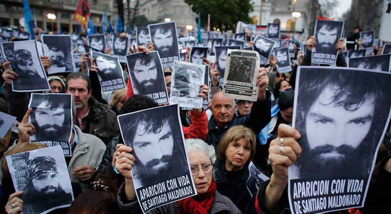 Santiago Maldonado desapareció el 1 de agosto de 2017 cuando agentes de la Gendarmería desalojaron un bloqueo de ruta que realizaban miembros de una comunidad mapuche en reclamo de tierras propiedad del grupo italiano Benetton, protesta en la que participaba la víctima.