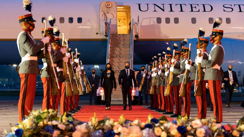 “Estoy aquí en la Ciudad de Guatemala para mi primer viaje internacional como vicepresidenta”, escribió Harris en Twitter tras su llegada al país, donde se reunirá con el presidente guatemalteco, Alejandro Giammattei, y líderes sociales.