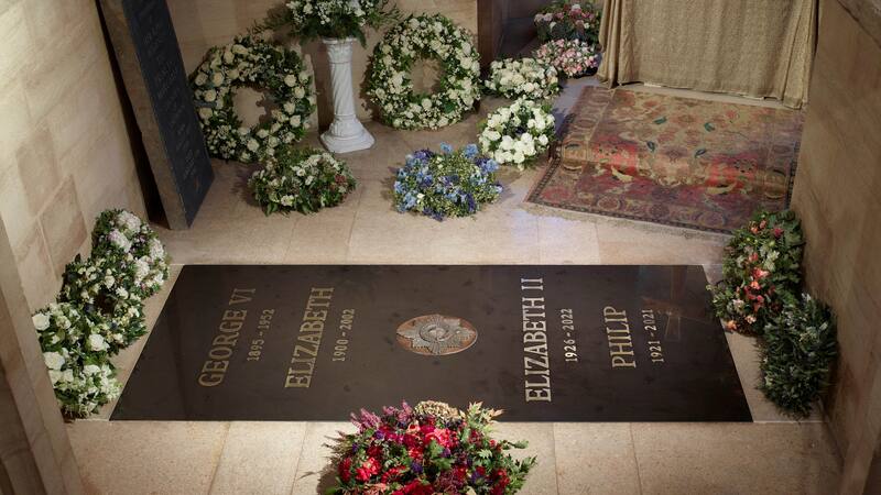 En la piedra se pueden leer las inscripciones “George VI / 1895-1952″, “Elizabeth / 1900-2002″, una estrella de la Orden de la Jarretera y después “Elizabeth II / 1926-2022″ y “Philip / 1921-2021″. En la fotografía aparecen también varios ramos y coronas florales. La losa anterior solo tenía los nombres de Jorge VI y de la Reina Madre en letras doradas.