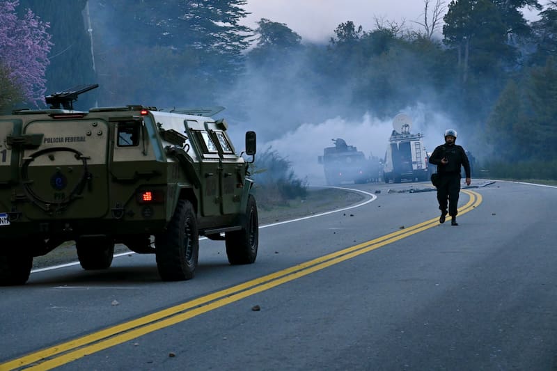 La imagen no tenía nada que ver con el día a día de Villa Mascardi. Eran las cuatro de la madrugada y vehículos de guerra cruzaban la carretera que une al poblado con el resto de la provincia de Río Negro. Unos 250 efectivos de la Policía Federal, en conjunto con la Policía de Seguridad Aeroportuaria, Gendarmería y la Prefectura Naval Argentina, entraron cerca de las 7.30 horas del martes a la comunidad en manos de la Lof Lafken Winkul Mapu. Era un “comando unificado”, como le llamaron las autoridades al grupo.