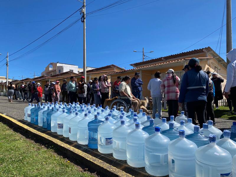 “Estamos haciendo cola desde la mañanita y no llega”, dijo Inés Castro, residente del sector de Chillogallo, al sur de Quito, a CNN, mientras se le llenaban los ojos de lágrimas. “Vivo sola, estoy solita”, añadió la mujer de 74 años, y explicó que esperaba que algún vecino la ayudara a trasladar el balde a su casa si logra llenarlo.