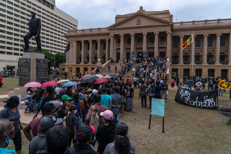Meses de manifestaciones contra el gobierno y la ira pública por el manejo de la economía por parte del gobierno culminaron el sábado con miles de manifestantes en la capital de Sri Lanka, Colombo, que asaltaron y ocuparon las residencias oficiales de Rajapaksa y el primer ministro Ranil Wickremesinghe. Este último dijo en un tuit que su renuncia daría paso a los líderes de los partidos políticos de Sri Lanka para formar un gobierno interino de todos los partidos, antes de celebrar nuevas elecciones en una fecha aún por decidir.