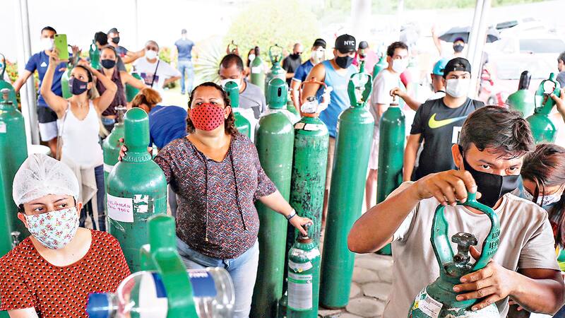 Debido a que los hospitales están saturados de pacientes con Covid-19, miles de personas dependen de los tanques de oxígeno para combatir la enfermedad en casa. Muchos hogares también mantienen sus cilindros vacíos, en caso de que un familiar o conocido se enferme.